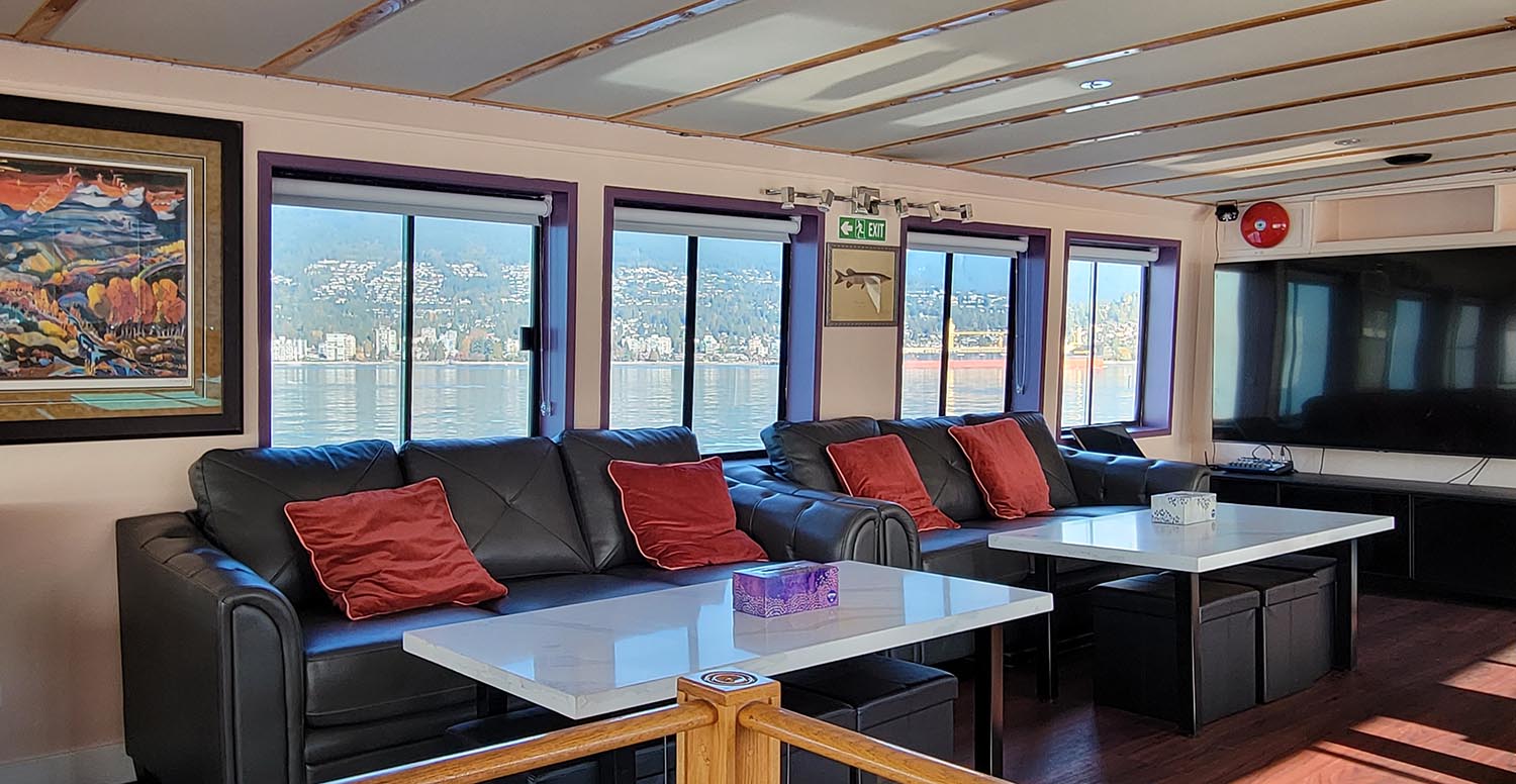 Cabin rates are fully all-inclusive, featuring daily chef-prepared meals, beverages, and a curated selection of beer and wine to enjoy responsibly throughout the voyage. Our onboard atmosphere is relaxed and elevated — designed for sunset toasts and shared moments, not a party-boat scene. Guests also have access to four double-person kayaks for coastal exploration.